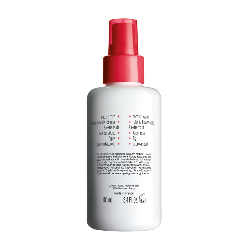 Questa nuvola di goccioline microscopiche, florealmente profumata, prepara, rinfresca e assicura bellezza alla pelle. Composta per il 90% da ingredienti di origine naturale