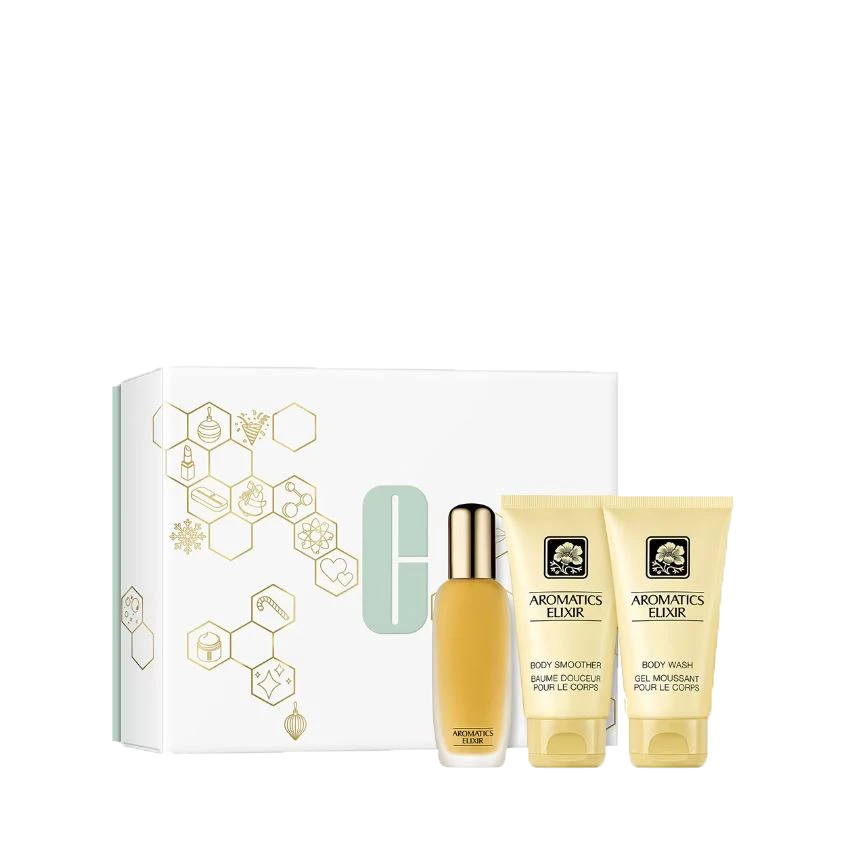 Il set contiene: Aromatics Elixir Perfume Spray 45ml + Aromatics Elixir Body Smoother 75ml + Aromatics Body Wash 75ml