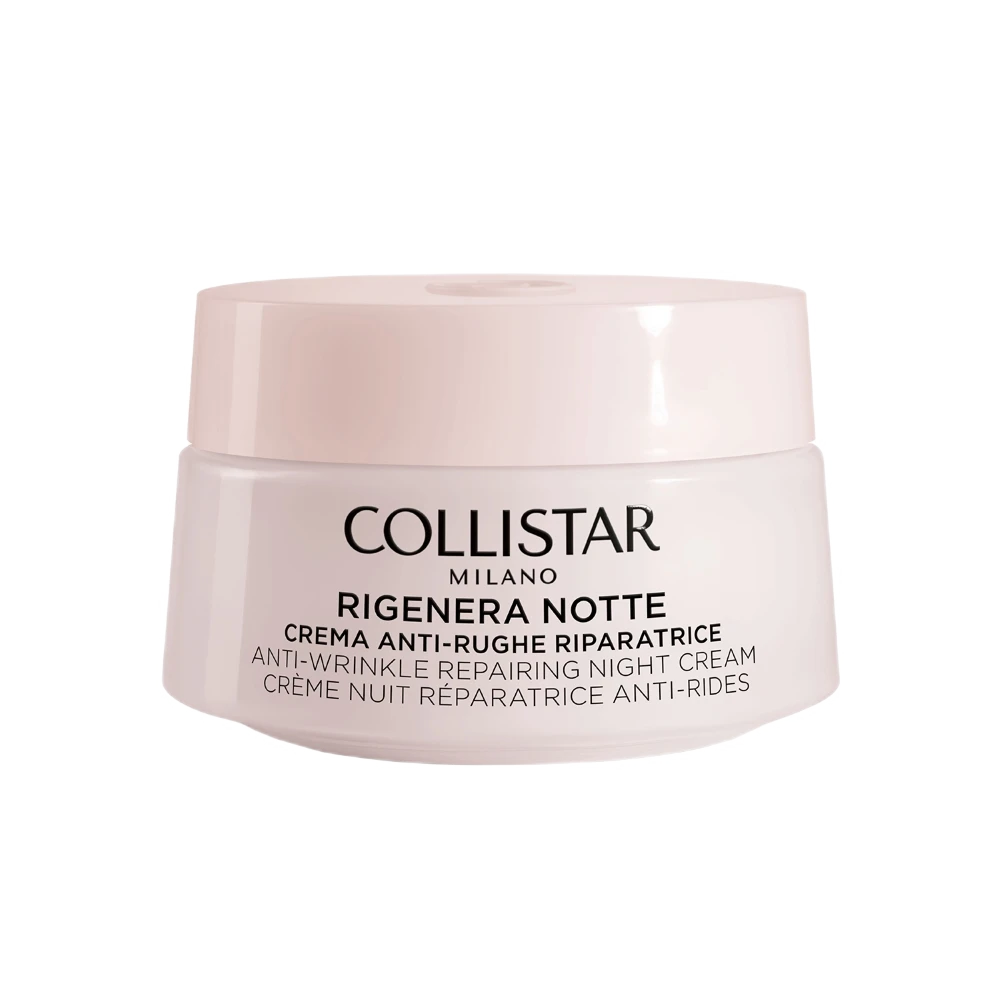 Crema notte antirughe nutriente specificatamente formulata per rigenerare in profondità la pelle durante le ore notturne.