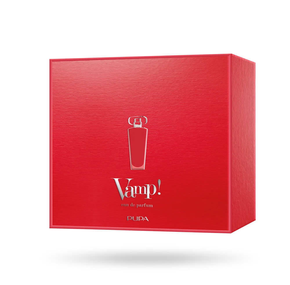 Bergamotto e Pepe Rosa risvegliano i sensi e danno carattere al Gelsomino e alla Tuberosa. La nota di fondo Polvere di Cacao conferisce un allure gourmand a cui è impossibile rinunciare. Il flacone si ispira alla forma di Vamp! il mascara icona di Pupa, ma si veste di Rosso per raccontare una donna dall’animo Irriverente e Sensuale.